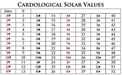 You’ll discover that July 4th (Solar Value 37) is the J♦ (Jack of Diamonds), November 7th (26) is the K♣ (King of Clubs) and December 31st (0) is the Joker ♥♣♦♠.