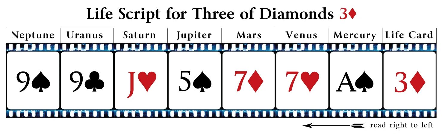 Deciding what they value plagues the Three of Diamonds♦ more than anything else. Typical of all Threes (3), indecision and uncertainty are hallmarks of this card. They are destined to have more experiences in life that teach them about values than any other card in the deck.