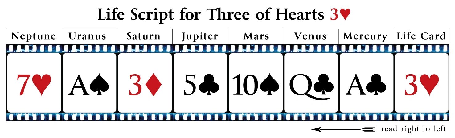 The dreamy energy of their lifetime Neptune Seven of Hearts♥ combined with their Ace of Hearts♥ Challenging Karma Card (-KC) may confirm and inflate their expectation of perfect love. People are inherently flawed and this proves quite disorienting for a Three of Hearts♥ person.
